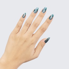 One couldn’t dream of a lovelier dark teal polish with a silvery shimmer.