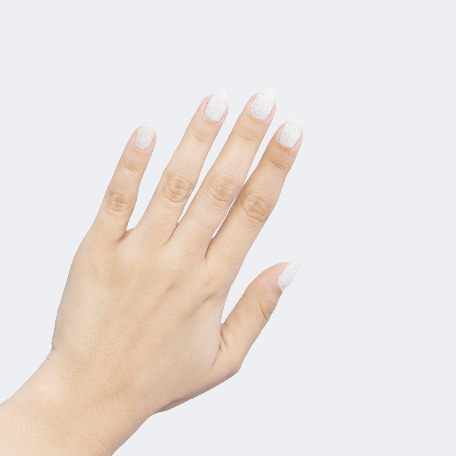 Tap into your elegance; top your manicure with our beautiful new white shimmer powder that catches the light like thousands of tiny white crystals.